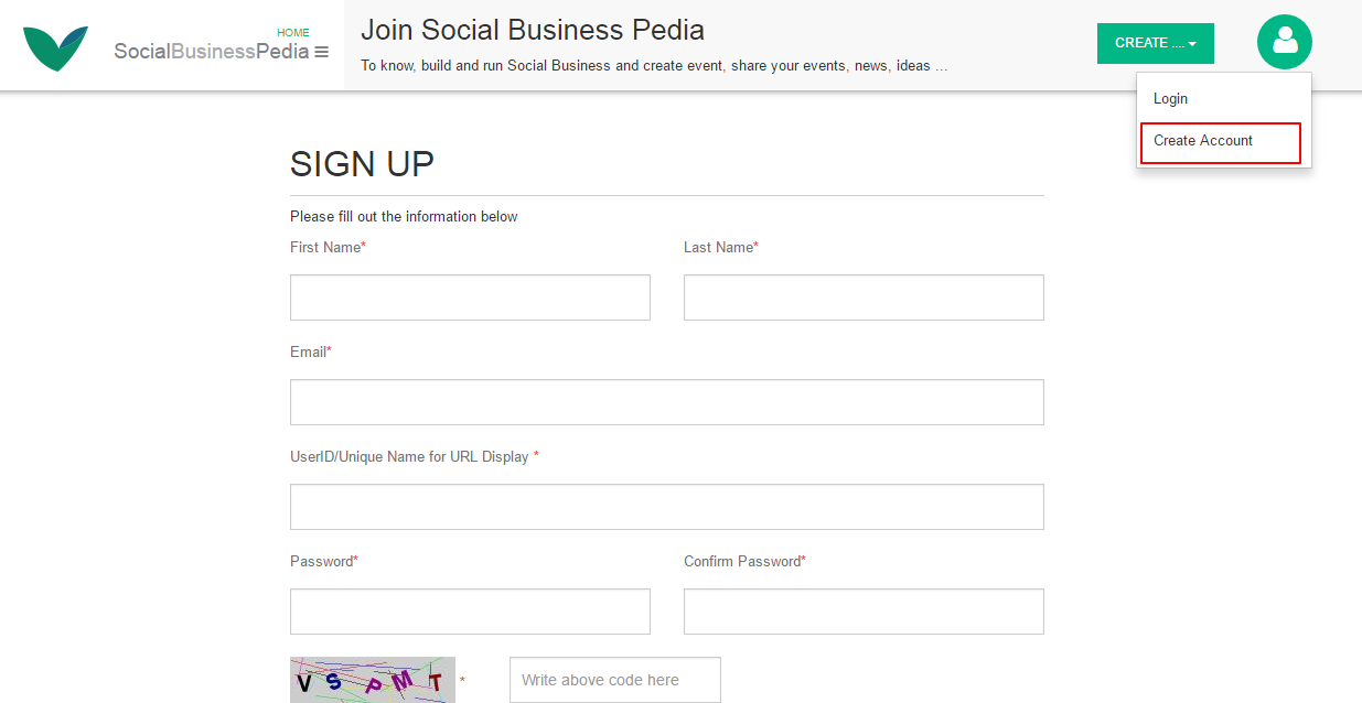 1. Click on Create account link then fillup with related info and then click on submit button.