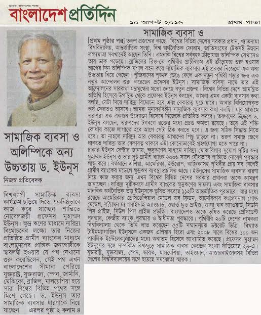সামাজিক ব্যবসা ও অলিম্পিকে অন্য উচ্চতায় ড. ইউনূস