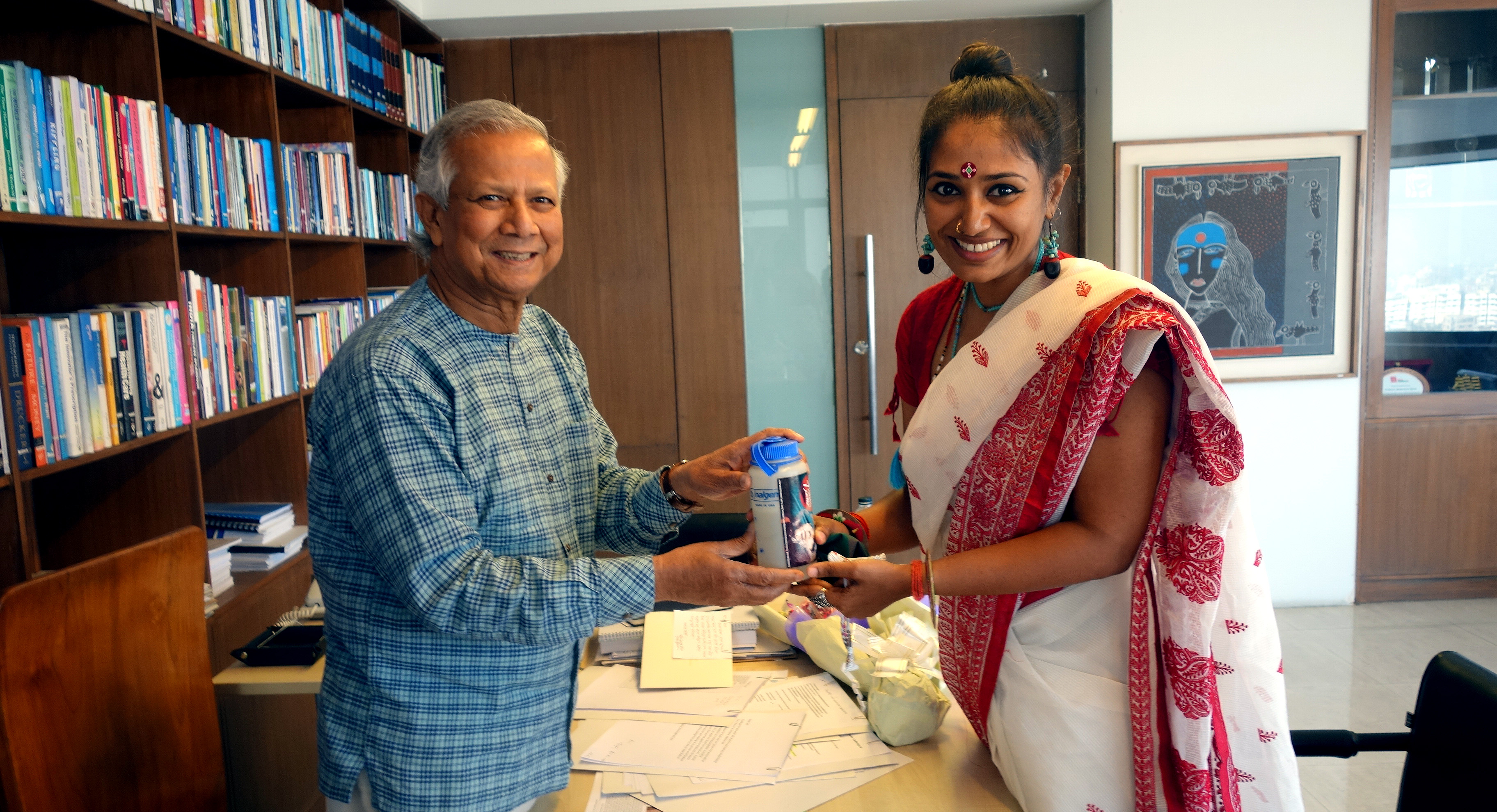 ওয়াসফিয়া নাজরীনকে প্রফেসর মুহাম্মদ ইউনূসের অভ্যর্থনা