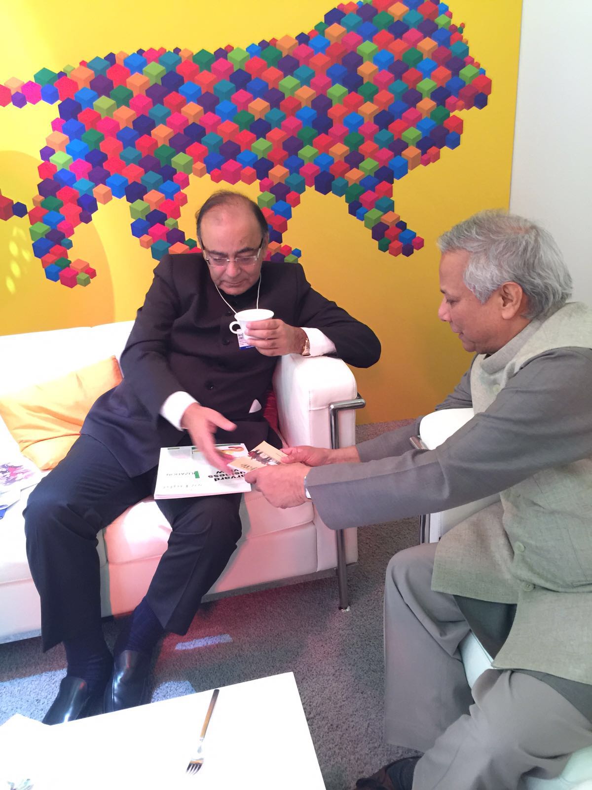 Nobel Laureate Professor Muhammad Yunus had a meeting with Union Finance Minister of India Arun Jaitley at his invitation to discuss programs for the poor in India on 21 January in Davos during the World Economic Forum.