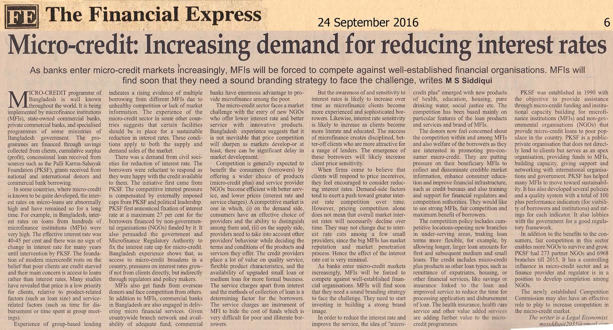 Micro-credit: Increasing demand for reducing interest rates