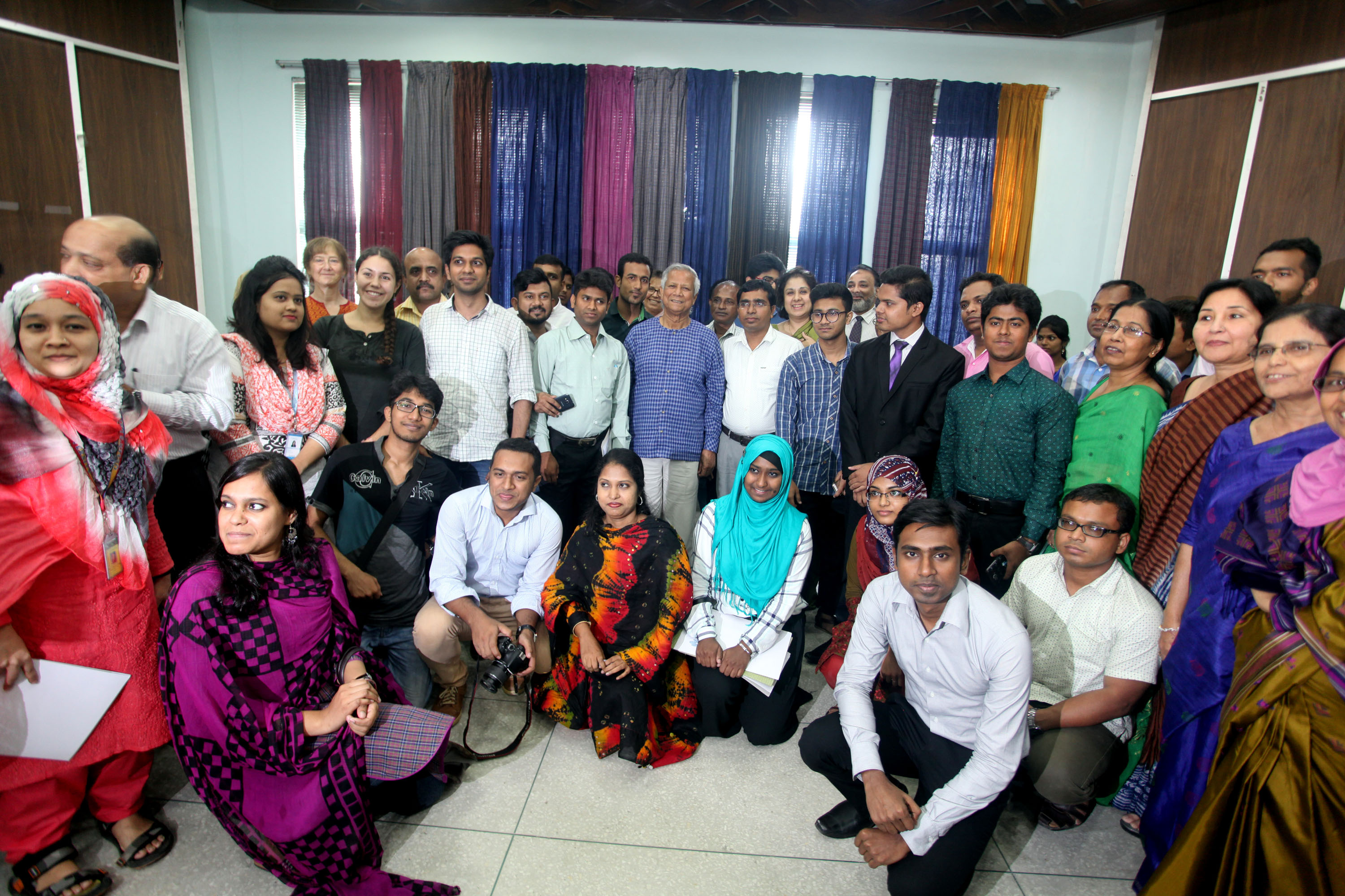 Caption for image three : Participants of 2nd Social Business Design Lab are seen with Nobel Laureate Professor Muhammad Yunus on Monday 30th May 2016 at the Grameen Bank auditorium. Photo: Nasir Al Mamun/Yunus Centre