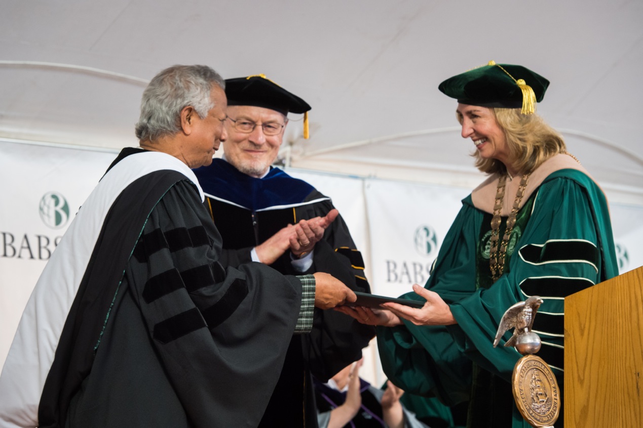 নোবেল শান্তি পুরষ্কার বিজয়ী প্রফেসর মুহাম্মদ ইউনূস ১৪ মে ২০১৬ মার্কিন যুক্তরাষ্ট্রের ম্যাসাচুসেট্স, ওয়েলেসলির ঐতিহ্যবাহী ব্যবসন কলেজের (Babson College) ২০১৬ সালের সমাবর্তন অনুষ্ঠানে “সমাবর্তন বক্তৃতা” প্রদান করেছেন।