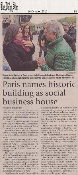 The mayor of Paris has designated the office to Yunus Centre so that it can help build social business in Paris.