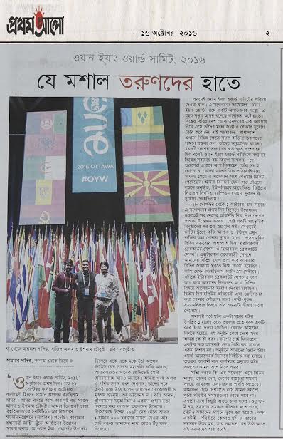‘ওয়ান ইয়াং ওয়ার্ল্ড সামিট, ২০১৬’ অনুষ্ঠানের প্রথম দিন। গত ২৮ সেপ্টেম্বর কানাডার অটোয়ার পার্লামেন্ট হিলের সামনে অপেক্ষা করছিলাম আমরা। আমরা বলতে আমি আর দুই বন্ধু সাজিদ আলম ও ইশমাম চৌধুরী। আমরা তিনজনই ঢাকা বিশ্ববিদ্যালয়ের ইনস্টিটিউট অব বিজনেস অ্যাডমিনিস্ট্রেশনে (আইবিএ) পড়েছি। কানাডার প্রধানমন্ত্রী জাস্টিন ট্রুডো অনুষ্ঠানের উদ্বোধন ঘোষণা করার পর ওয়ান ইয়াং ওয়ার্ল্ডের উপদেষ্টা হিসেবে একে একে মঞ্চে উঠে আসেন জাতিসংঘের সাবেক মহাসচিব কফি আনান, আয়ারল্যান্ডের সাবেক প্রেসিডেন্ট মেরি রবিনসনসহ আরও অনেকে। আমরা খুবই অবাক ও গর্বিত হলাম যখন দেখলাম, তাঁদের সঙ্গে একই মঞ্চে উঠে এলেন আমাদের নোবেলজয়ী ড. মুহম্মদ ইউনূস। শুধু উঠলেনই না। কফি আনান, রবিনসনের মতো তিনিও একজন প্রধান বক্তা হিসেবে কথা বললেন তরুণদের উদ্দেশ্যে। নিঃসন্দেহে বিশ্বের ১৯৬টি দেশ থেকে আগত ১ হাজার ৩০০ তরুণের সামনে দেওয়া তাঁর সেই বক্তব্য আমাদের মাথা আরও উঁচু করে দিয়েছে।