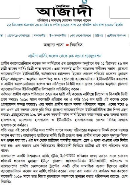 গ্রামীণ ক্যালেডোনিয়ান কলেজ অব নার্সিংয়ের ৫ম গ্র্যাজুয়েশন অনুষ্ঠানে গত ২১ ডিসেম্বর ৪৯ জন ছাত্রী তাদের নার্সিং ডিগ্রী লাভ করলো। এরা সকলেই গ্রামীণ ব্যাংকের ঋণীদের সন্তান। গ্লাসগো ক্যালেডোনিয়ান ইউনিভার্সিটি, স্কটল্যান্ডের চ্যান্সেলর হিসেবে নোবেল লরিয়েট প্রফেসর মুহাম্মদ ইউনূস গ্র্যাজুয়েশন অনুষ্ঠানে সভাপতিত্ব করেন। গ্লাসগো ক্যালেডোনিয়ান ইউনিভার্সিটির অধ্যাপক ও গ্রামীণ ক্যালেডোনিয়ান কলেজ অব নার্সিংয়ের নির্বাহী প্রধান ফ্রাংক ক্রোসান অনুষ্ঠানে গ্লাসগো ক্যালেডোনিয়ান ইউনিভার্সিটির উপাচার্যের প্রতিনিধিত্ব করেন।