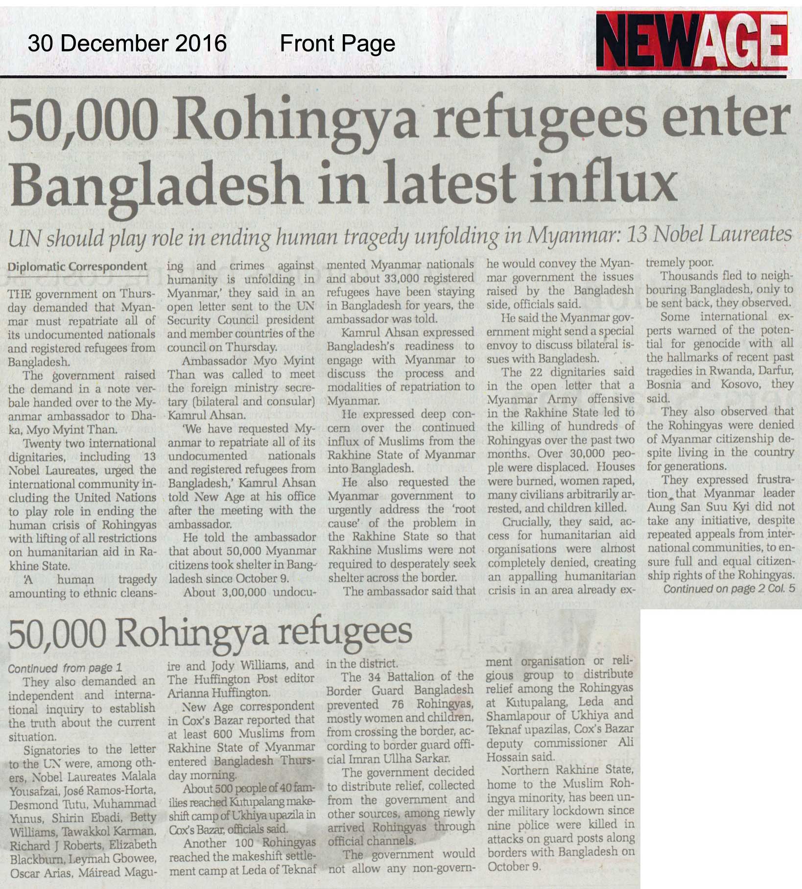 13 Nobel laureates, 10 noted personalities seek UN intervention into Rohingya crisis