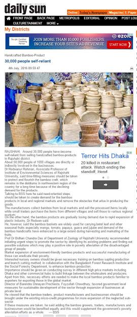 Dr Redwanur Rahman, Associate Professor of Institute of Environmental Sciences of Rajshahi University, said time-fitting measures should be taken to protect and flourish the bamboo craft, which remains in the doldrums in northwestern region of the country for a long time because of the declining demand for the products.