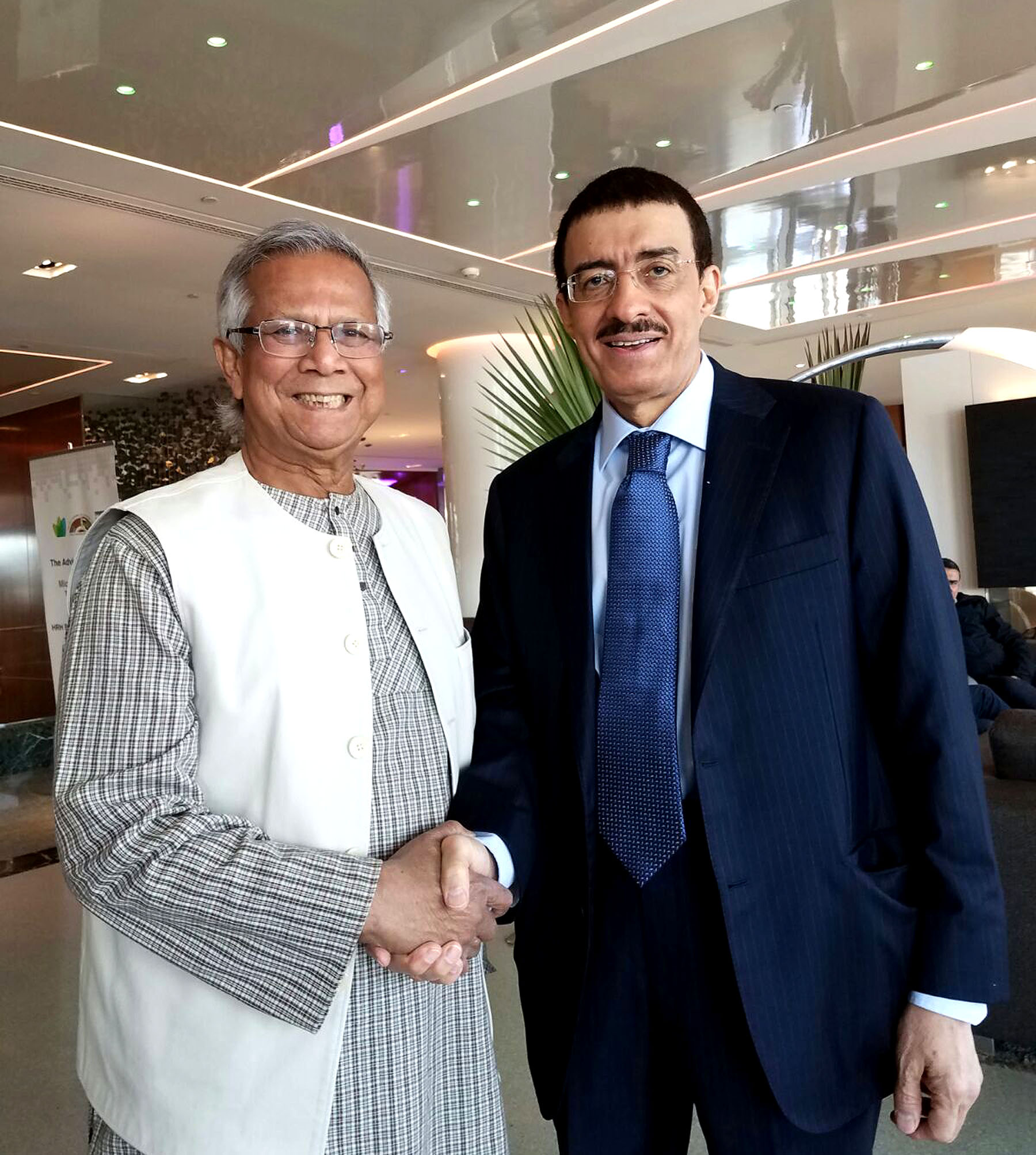 AGFUND celebrated the 18th annual award ceremony of its International Prize for Pioneering Human Development Projects. HM Queen Sofia of Spain and Nobel Laureate Professor Muhammad Yunus co-chaired the AGFUND Prize committee meeting. This event takes place every year in the framework of AGFUND’s continuing focus on human development and humanitarian issues, in a world increasingly beset by new and recurrent human crisis, every year since 1999. On the sidelines of this meeting Professor Muhammad Yunus had a separate meeting with Dr Bandar Hajjar the new President of the Islamic Development Bank.