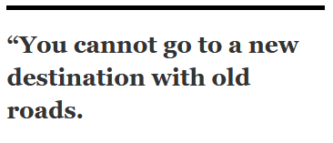 And as I always say, you cannot go to a new destination with old roads. You have to build new roads to get to the new destination. So don’t cling to the old roads, don’t try to tinker with them, to fix them, they cannot and will not take us to the new destination.
