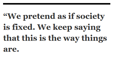 Because essentially, we did not elect governments to make other people rich. We gave them power so they could help us. And what they have done is, they’ve used our power to make somebody else a super power. If they insist that any license or privilege that they give be used for a social business, we will see change. We’ll be on our way to building a new society, a new world.
