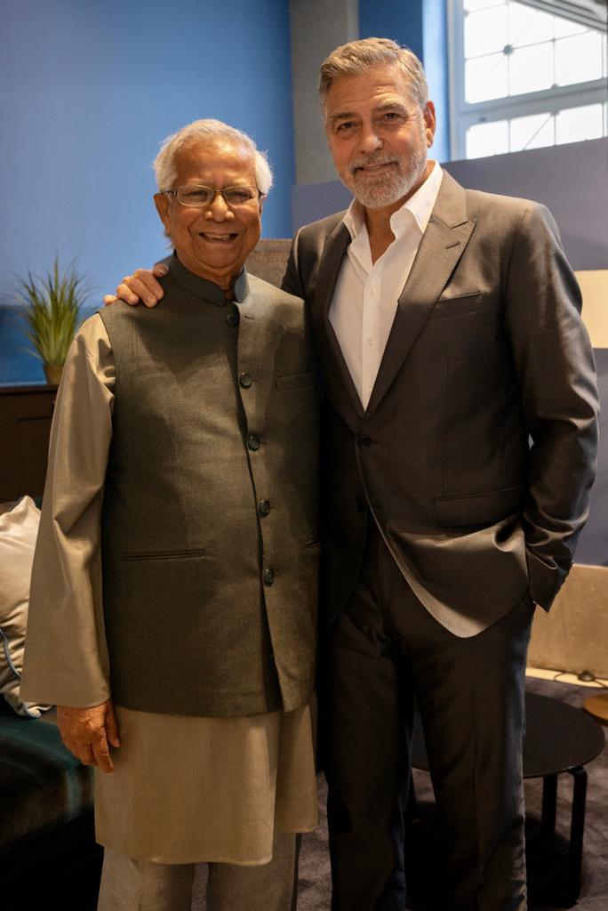 Before the gala Professor Yunus had a separate meeting with George Clooney with whom he has worked before. Besides having spoken together at the same event, Mr Clooney had signed Professor Yunus’ call to End Genocide against the Rohingya more recently his call to make Covid 19 Vaccines as a Global Common Good free of IP. Mr Clooney in his talk with Professor Yunus that microcredit following Prof Yunus approach had made a big difference in the lives of people in the areas that he and Amal Clooney as part of the Clooney Foundation was working for in South Sudan/ Darfur. He mentioned that Ms Amal Clooney had especially wanted to be present on this occasion to meet Professor Yunus.