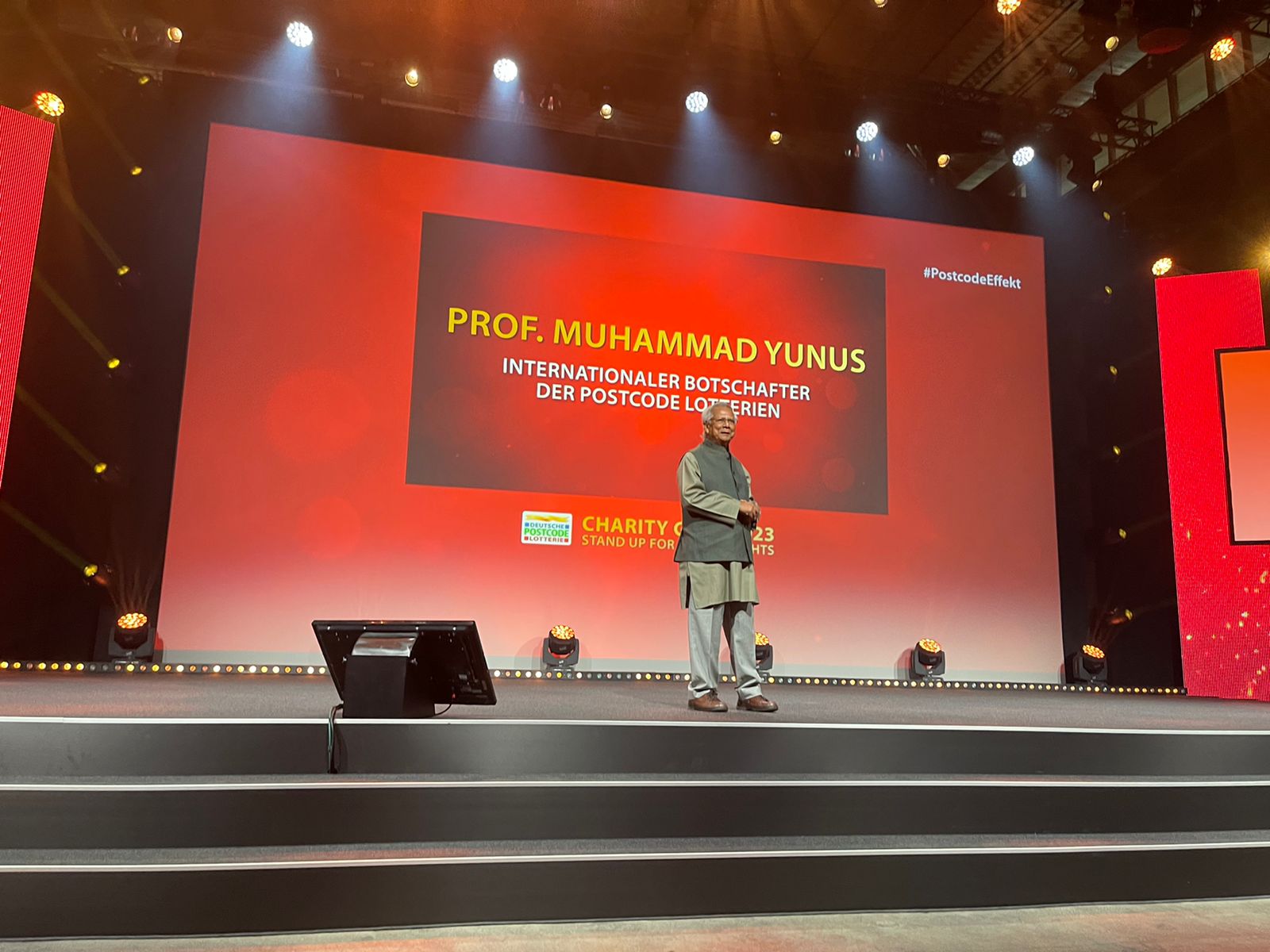 Nobel Laureate Professor Muhammad Yunus was a keynote speaker at the 2023 Charity Gala event of the Germany Post Code Lottery in Dusseldorf on May 24, 2023.