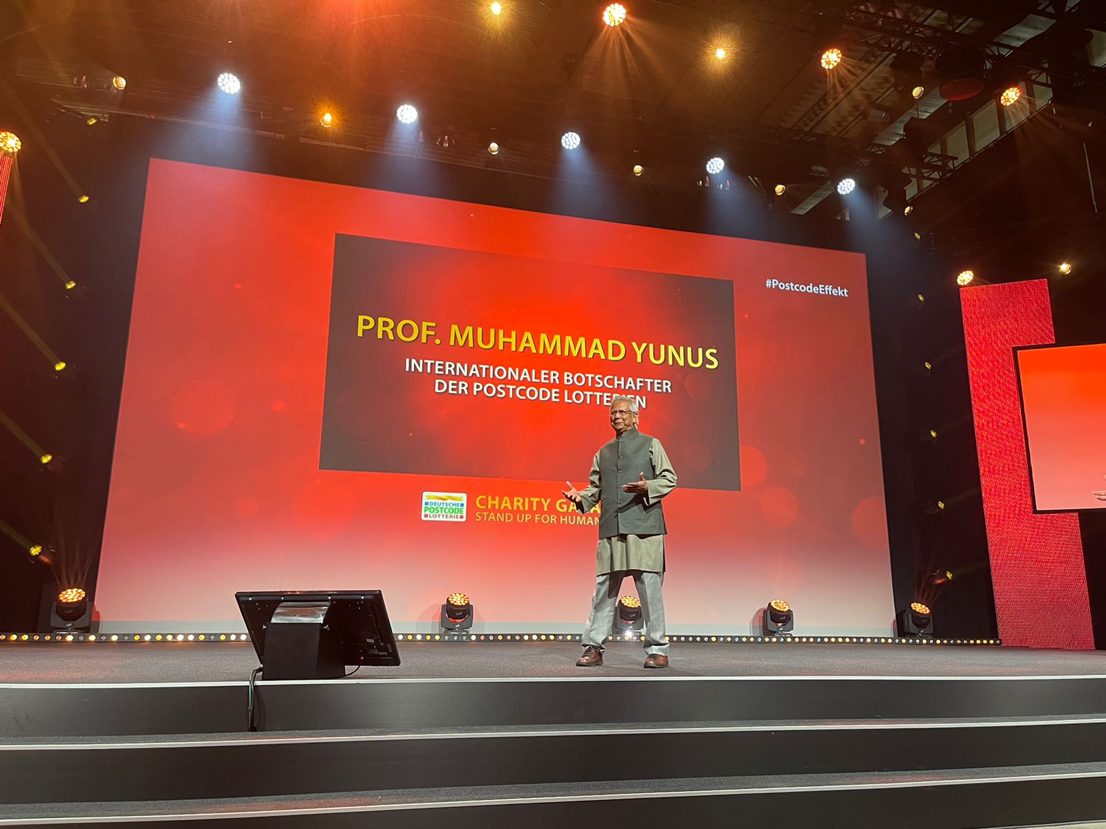 Photo Caption-4&5: Nobel Laureate Professor Muhammad Yunus International goodwill ambassador of the Postcode Lotteries addressing the audience on May 24, 2023 at the 2023 Charity Gala event of the Germany Post Code Lottery in Dusseldorf, Germany.