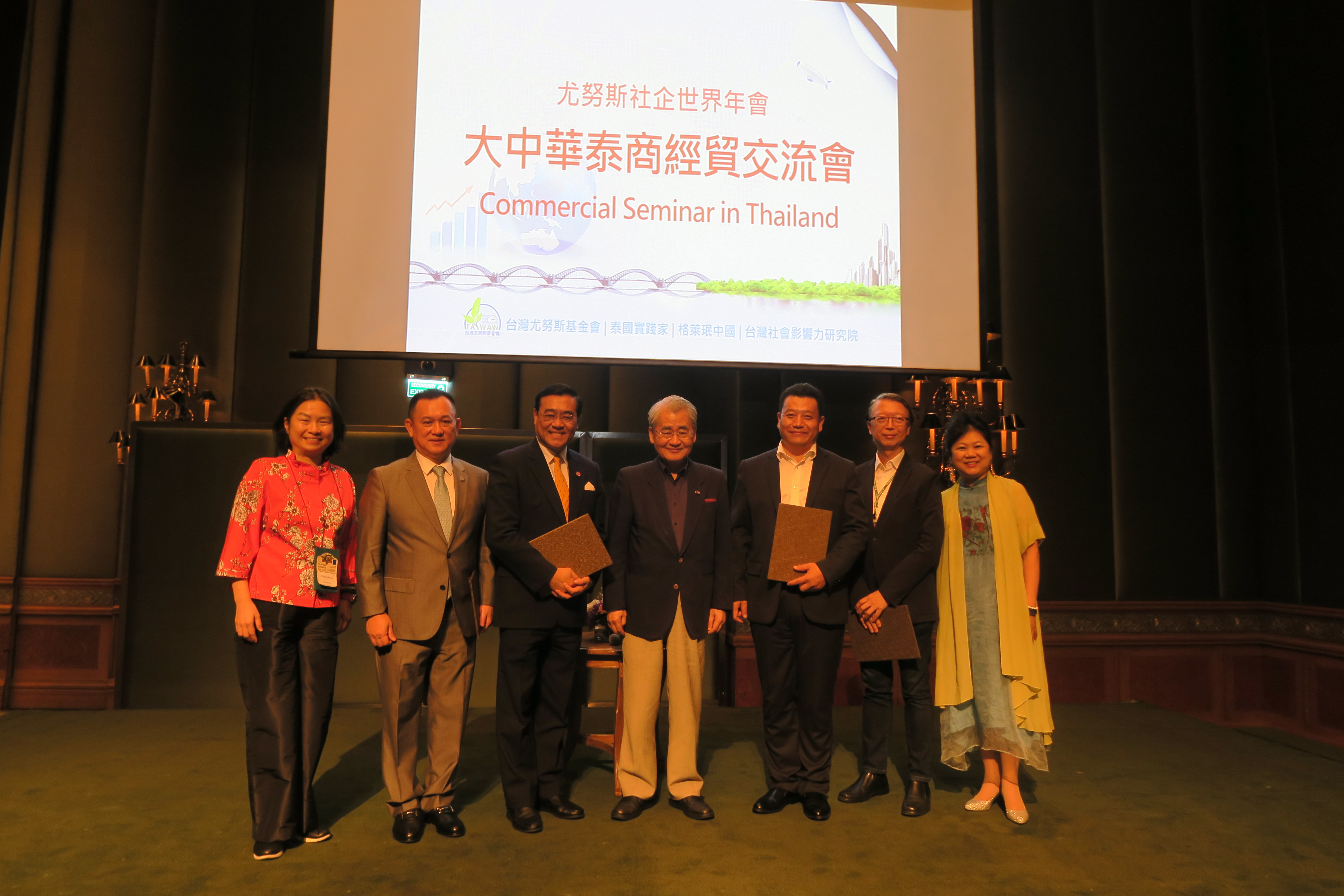 Through the assistance from the President of the Joint Foreign Chambers of Commerce in Thailand (JFCCT), Stanley Kang, the Taiwan delegation visited the University of the Thai Chamber of Commerce. VIPs at the meeting included the General Director of Thai Traders Kraisin Vongsurakrai, the Chairman of Thailand Tourism Bureau and the Chairman of the Thai Chamber of Commerce, Kalin Sarasin, and the Honorary Chairman of the Thai Chamber of Commerce, Isara Vongkusolkit. The president of FYSBT Philippa Tsai said that the seminar will promote the business cooperation between Taiwan and Thailand, and promoting the concepts of social business. In the future, it is hoped to the world of three zeros that is proposed by professor Yunus will realize.